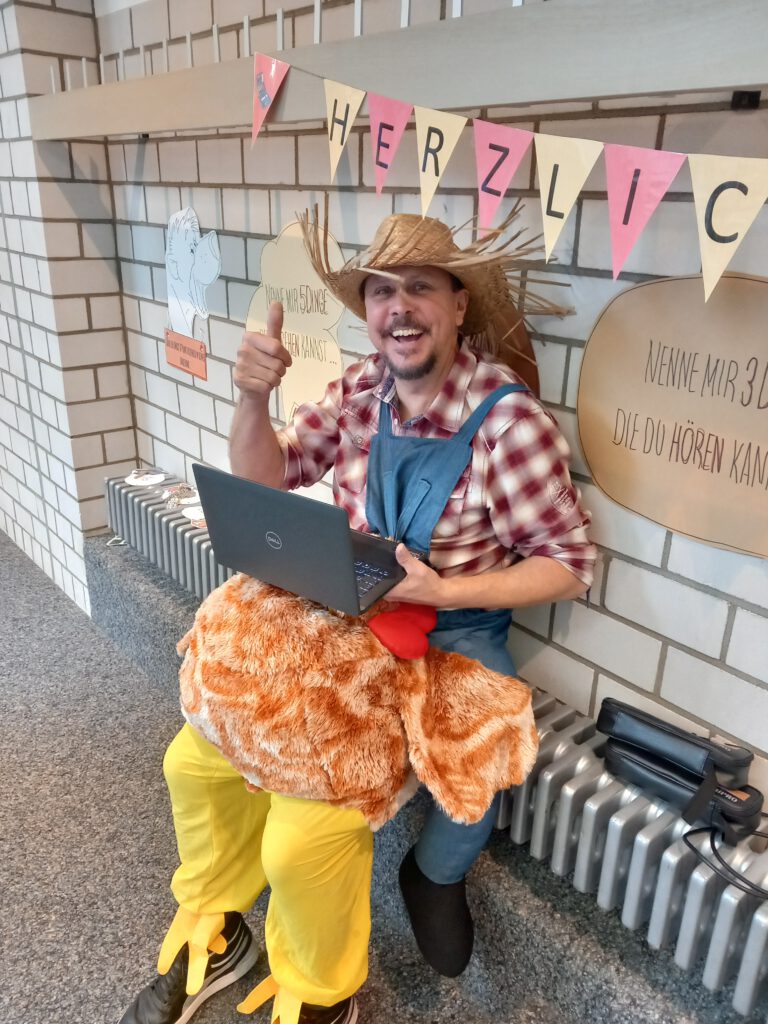 Schmutziger Donnerstag an unserer kleinen Grundschule. Um zehn Uhr hieß es Abschiednehmen von unserer langjährigen Schulsozialarbeiterin Linda Dannroth. Ihr zu Ehren führte die Klasse 3b unter der Leitung von Frau Schüle ein selbstgeschriebenes Theaterstück vor, das alle sehr bewegte. Im Anschluss wurden von verschiedenen Klassen Abschiedsgeschenke übergeben, bis schließlich Frau Brand im Namen der gesamten Schulgemeinschaft schöne Abschiedsworte fand und ein süßes Präsent übergab. Nun konnte die Schulrakete starten und man feierte eine Faschingsparty, wie sie unsere Grundschule noch nie gesehen hatte, mit lauter Musik, Polonäse, „Guzelschmeißen“ und Konfettibomben…