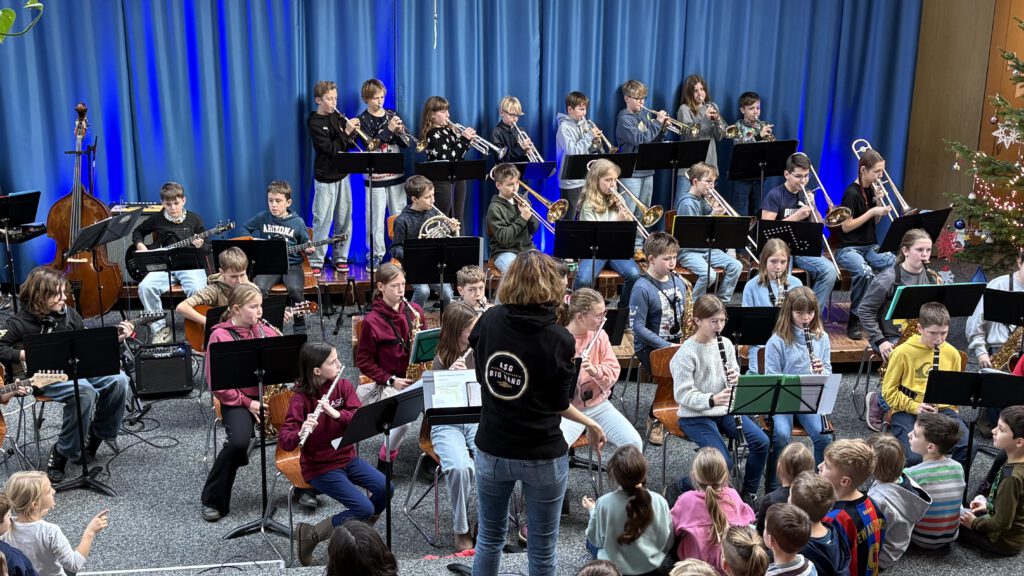 Neckarbischofsheim. Heute boten die musikalischen Ensembles des ASG unter der Leitung von Barbara Stark und Luise Leinberger ein wahres Feuerwerk der Töne! Sowohl die Gruppe „Crazy Instruments“ als auch die Mittelstufen-Band zeigten eindrucksvoll ihr Können und sorgten für eine festliche Stimmung.